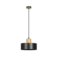 Emibig - Lampa wisząca Torin 1 black - wysokość max 100 cm, stal lakierowana, drewno