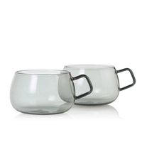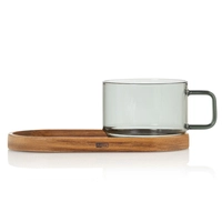 AdHoc – Zestaw filiżanka IMPACT – 300 ml z przyciemnianego szkła z podstawką z drewna akacjowego