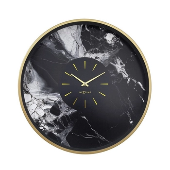 NeXtime - Zegar ścienny Marble Duo ze szklaną tarczą – złoto-czarny, 48 cm