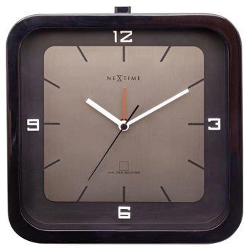 ( ilość produktów: 320 )NeXtime – Zegar stołowy Square Alarm – czarny, szkło i drewno, 20 x 20 cm