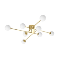 Stylowa lampa przysufitowa ASTRA 8 to oświetlenie o nowoczesnym stylu i kształcie, który łatwo wkomponuje się w wiele różnorodnych aranżacji. Oprawa przypomina konstelację gwiazd. mleczne, okrągłe klosze umieszczone są na stelażu dostępnym w trzech kolorach: złotym, srebrnym i czarnym ze złotymi dodatkami.