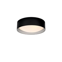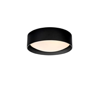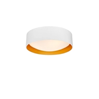 Okrągły plafon o wysokości 12 cm i imponującej średnicy 45 cm, wykonany został z metalu o matowym wykończeniu w kolorze białym lub czarnym. Wnętrze lampy pokryte zostało natomiast srebrną lub złotą powłoką, która zmiękcza i efektownie rozprasza światło. Wykończenie delikatnie kontrastuje z ukrytym w środku białym, szklanym kloszem, który skrywa aż trzy źródła światła.