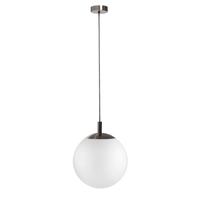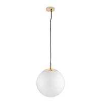 Okrągły klosz lampy wiszącej Alur M o średnicy 30 cm, wykonany został z wysokiej jakości szkła w dwóch kolorach: białego, błyszczącego oraz transparentnego. Biały klosz pięknie podkreśla naturalne piękno i ciepły charakter światła, i najlepiej prezentować się będzie w zestawieniu z silną, jasną żarówką. Klosz transparentny wspaniel wyeksponuje nie tylko ozdobną żarówkę, ale i tulejkę. Podobnie jak w innych lampach o kulistym kształcie, również w przypadku lampy wiszącej Alur M zadbaliśmy o to, by źródło światła znalazło się w centralnym punkcie klosza, dzięki czemu każdy jego fragment jest tak samo doświetlony, a światło rozkłada się równomiernie.