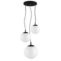 - Lampa wisząca trzypunktowa Alur w kolorze chromu o średnicy talerza przysufitowego 30 cm z białymi kloszami o średnicach: 20, 25 i 30 cm marki Kaspa wykonana z metalu oraz szkła.