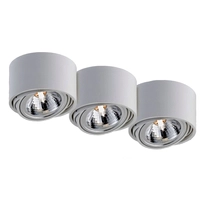 Oświetlenie punktowe Lumos 3 w kolorze białym lub czarnym to potrójna oprawa z metalu, pokrytego matową, proszkową powłoką składająca się z trzech cylindrycznych reflektorów o średnicy 14 cm i wysokości 8,5 cm. Wewnątrz każdej oprawy znajdują się dwa pierścienie, które umożliwiają mobilność halogenowej żarówki G9 (w komplecie) o 360 stopni. Dzięki temu rozwiązaniu, skierujesz strumień światła dokładnie tam, gdzie go potrzebujesz.