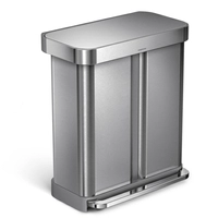 - Elegancki kosz Simplehuman 58L z funkcją segregacji, wyposażony w ciche zamykanie Lid Shox i wykonany ze szczotkowanej stali nierdzewnej, to doskonały wybór dla nowoczesnych, ekologicznie świadomych przestrzeni domowych i biurowych.
