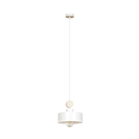 Emibig - Lampa wisząca Tuniso 1 white - wysokość max 100 cm, stal lakierowana, drewno