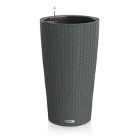 - Doniczka Cilindro Cottage 23 z systemem nawadniającym w kształcie cylindrycznej kolumny o powierzchni przypominającej rustykalną plecionkę. Donica ma wysokość 41 cm i średnicę 23 cm.