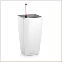 Donica wykonana jest z wysokiej jakości polipropylenu poddanego procesowi lakierowania. W zależności od koloru dzięki temu uzyskano optyczny efekt szlachetnej ceramiki lub szczotkowanego, matowego metalu. W skład kompletu wchodzi donica, wkład wewnętrzny, zestaw nawadniający, wskaźnik wody oraz substrat Lechuza PON.