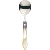 Łyżka do zupy Casa Bugatti Oxford w kolorze kości słoniowej to idealne połączenie ponadczasowego stylu i nowoczesnej funkcjonalności. Inspirowana angielskim dziedzictwem oraz klasyczną elegancją, stworzona została dla osób, które pragną dodać swoim posiłkom wyjątkowego charakteru. Dzięki starannemu wykonaniu ze stali nierdzewnej 18/10 oraz uchwytowi z akrylu o perłowym połysku, każdy element tej kolekcji łączy luksus z codzienną praktycznością. Ozdobny pierścień w kolorze antycznego srebra, przypominający herb szlachecki, nadaje całości wyjątkowej oprawy. To sztuciec, który sprawdzi się zarówno podczas codziennych obiadów, jak i w trakcie najbardziej uroczystych kolacji.