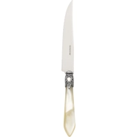 Wyrafinowany nóż do steków Casa Bugatti Oxford w kolorze kości słoniowej to idealny wybór dla osób ceniących luksus i dbałość o detale przy każdym posiłku. Jego elegancki design inspirowany angielskim dziedzictwem łączy w sobie klasyczną estetykę i nowoczesną funkcjonalność. Dzięki starannie zaprojektowanemu ostrzu ze stali nierdzewnej 18/10, nóż zapewnia łatwe i precyzyjne krojenie mięs, podkreślając wyjątkowy charakter każdej uroczystości czy codziennego obiadu. Perfekcyjnie wyważony uchwyt z akrylu o perłowym wykończeniu gwarantuje komfort w dłoni, a dekoracyjny chromowany pierścień dodaje całości królewskiego stylu.