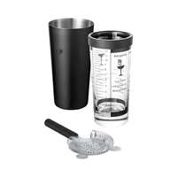 Zestaw 3 w 1: Metalowy shaker, szklana miarka z przepisami i sitko.
