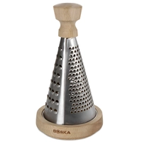• Osiągnij perfekcję w kuchni z elegancką tarką stożkową. Solidne drewno dębowe, ergonomiczny design i trzy rodzaje oczek zapewnią wygodę i wszechstronność. Idealna jako prezent dla pasjonatów kulinariów.