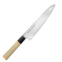 Nóż szefa kuchni Tojiro Shippu VG-10 to wybitne narzędzie kuchenne, które łączy w sobie japońską precyzję i wyjątkową trwałość. Zaprojektowany dla kucharzy na każdym poziomie zaawansowania, doskonale sprawdza się do krojenia mięsa, ryb, warzyw oraz owoców. Jego ergonomiczne wyprofilowanie i wyważenie gwarantują komfort i swobodę pracy, a długość ostrza umożliwia krojenie nawet dużych powierzchni z zachowaniem pełnej kontroli nad cięciem.