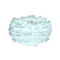 • Lampa Eos w kolorze niebieskim o średnicy 35 cm i wysokości 20 cm (rozmiar mini). Lampa została wykonana ze stali, tkaniny oraz naturalnych gęsich piór.