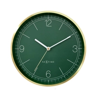 NeXtime – Zegar ścienny Essential Gold, zielony cyferblat, szkło i metal, 34 cm