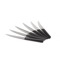 Chcąc zachować ostrość ostrza noży kuchennych, ważne jest regularne ich ostrzenie. W tym zestawie noży kuchennych znajduje się nie tylko komplet noży, ale także poręczny ostrzał, który zapewnia łatwe ostrzenie w zaciszu własnej kuchni. Noże wykonane są ze stali nierdzewnej, co zwiększa odporność na ścieranie i rdzę. Rękojeści noży o kropkowanej formie, co zapewnia pewny chwyt nawet w mokrych dłoniach.